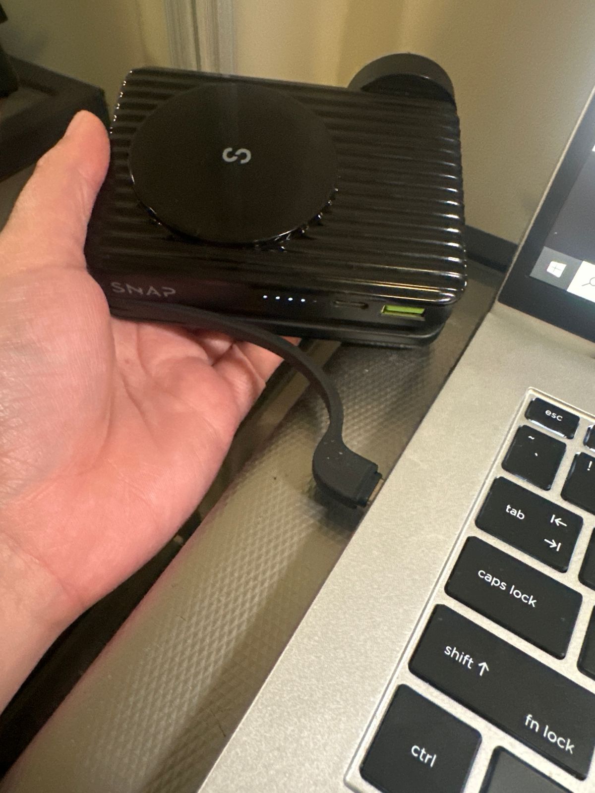 I bought this product mainly for the laptop charger purpose now that I have become a minimalist so this definitely helps a lot, it takes 30 minutes to fully drain the powerbank and charged 50% of my laptop. My only feedback is I hope it has strap to avoid it being dropped when used for phone charging and hoping to also have lightning charger cable too like the new ones where you can extend. I also leave the powerug attached as I might lose it and also able to charge when needed especially when out and about but it can be awkward having it as it extends out.